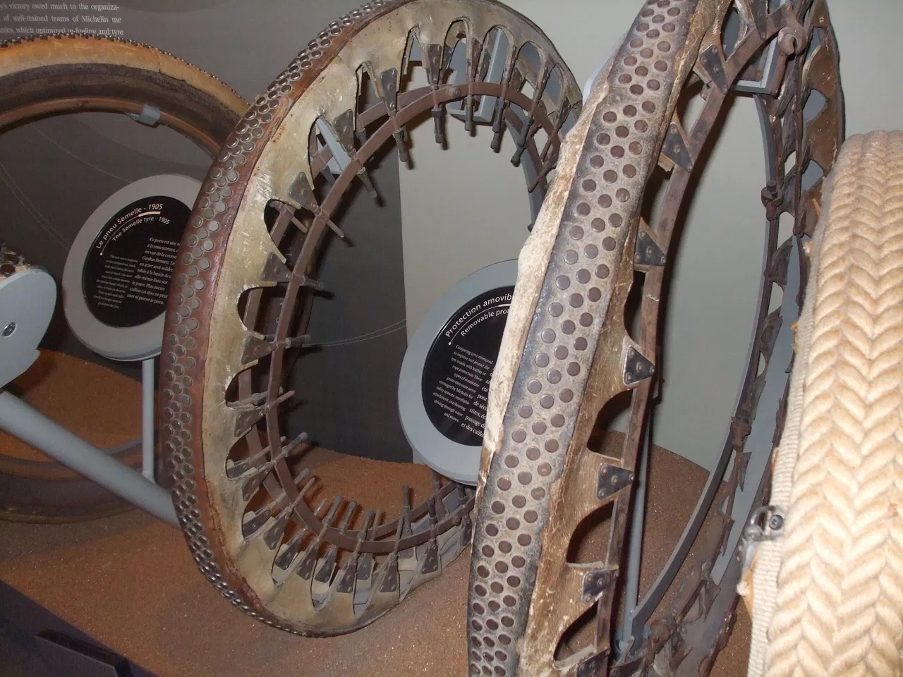The museum showcases the evolution of tires for a range of vehicles. This includes bicycles, carriages, agricultural vehicles, cars, trucks, and motorcycles. Visitors can learn about the process of making tires from raw materials such as rubber, sulfur, cotton, and steel.