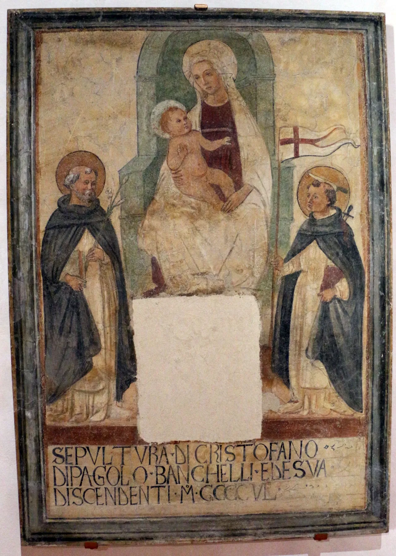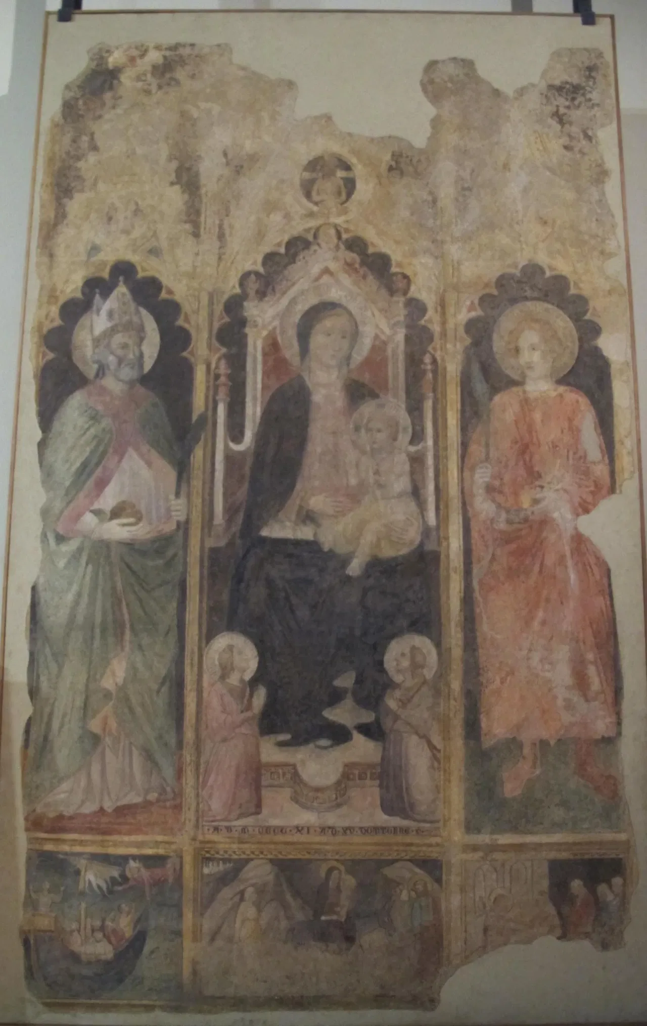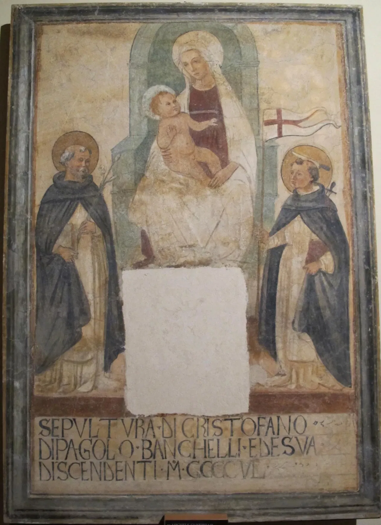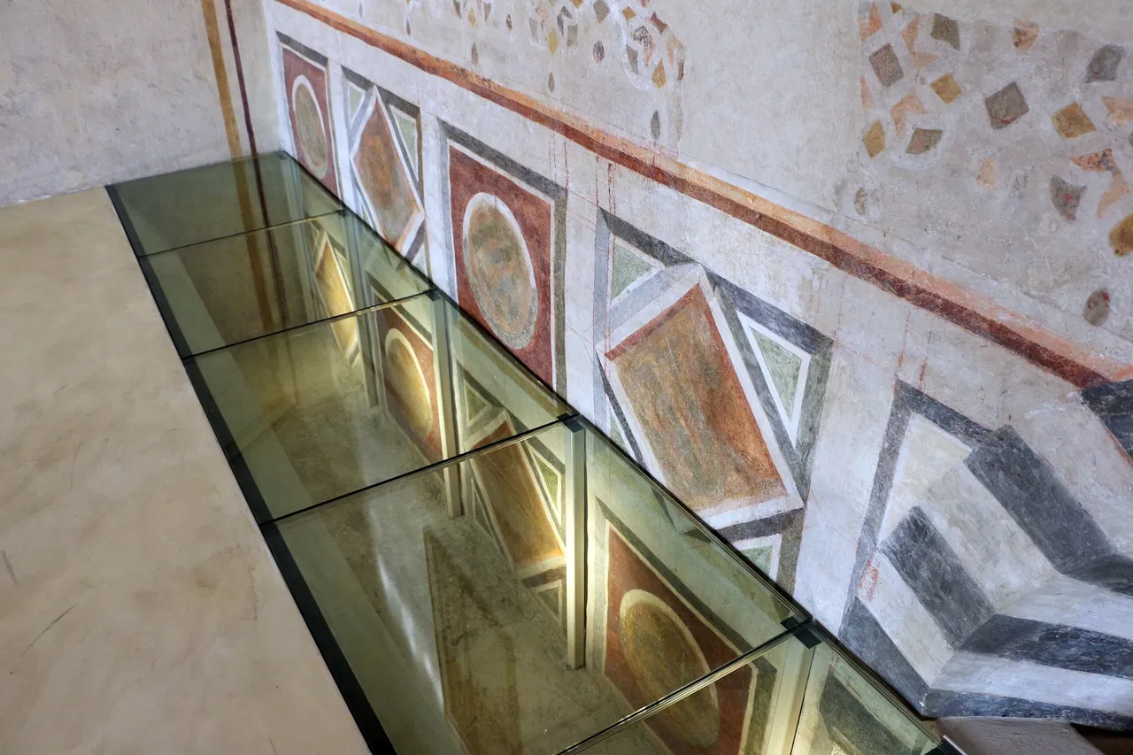 The current exhibition at the Museum of Mural Painting includes a variety of significant works. These include sepulchral insignia and fragments recovered from the cloister of San Domenico, dating back to the end of the 14th-15th century. A notable highlight is the valuable tabernacle featuring the Madonna, the Child, angels, and saints, frescoed by Niccolรฒ Gerini in 1391. This was commissioned by the merchant Francesco Datini. The exhibition also includes the sinopie of the imposing Tabernacle of Figline by Agnolo Gaddi and his workshop, and a fresco with a fake polyptych by Pietro di Miniato from 1411.